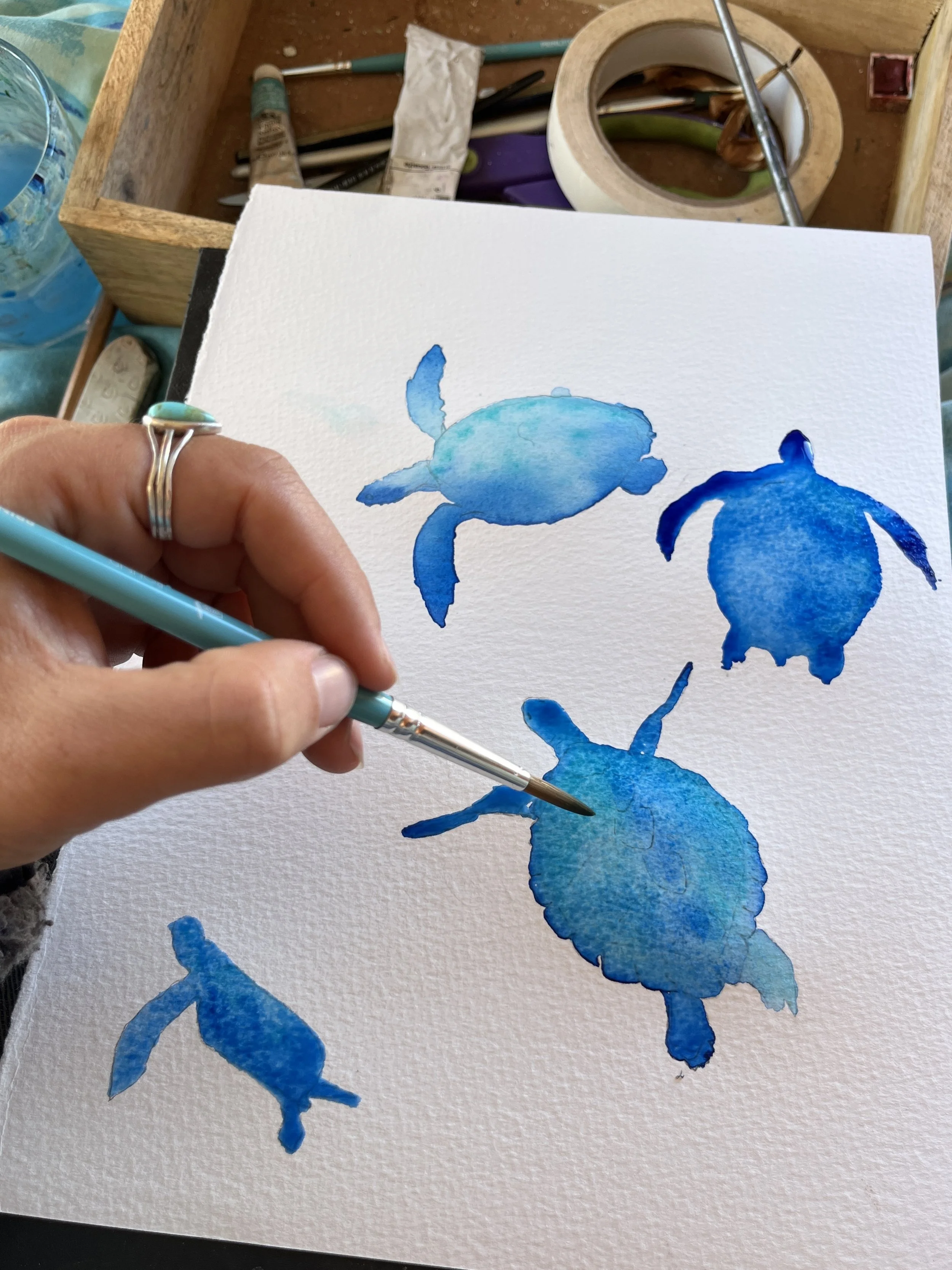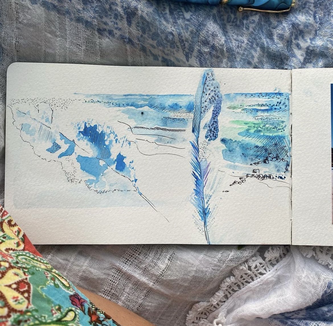 I love to play with the technique ‘Én Plain Air’ while on the road in my van. The freedom of slowly traveling up and down the coast following the sun capturing landscapes allows me to search for different perspectives. Watercolour is my medium of choice. I lean into the free-flowing form it naturally creates, pairing detailed patterns found in nature while being completely immersed in it.