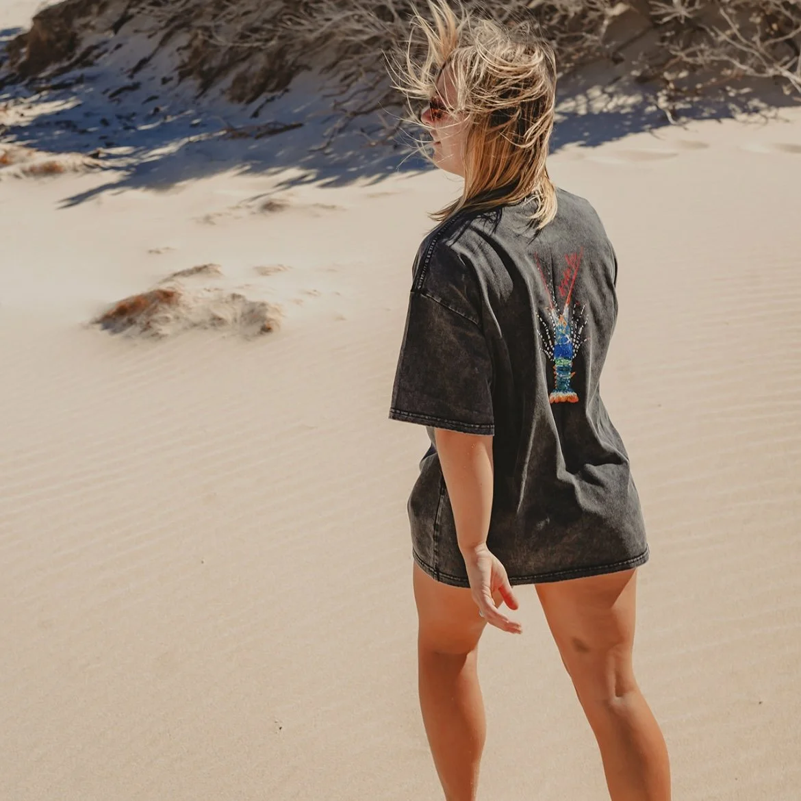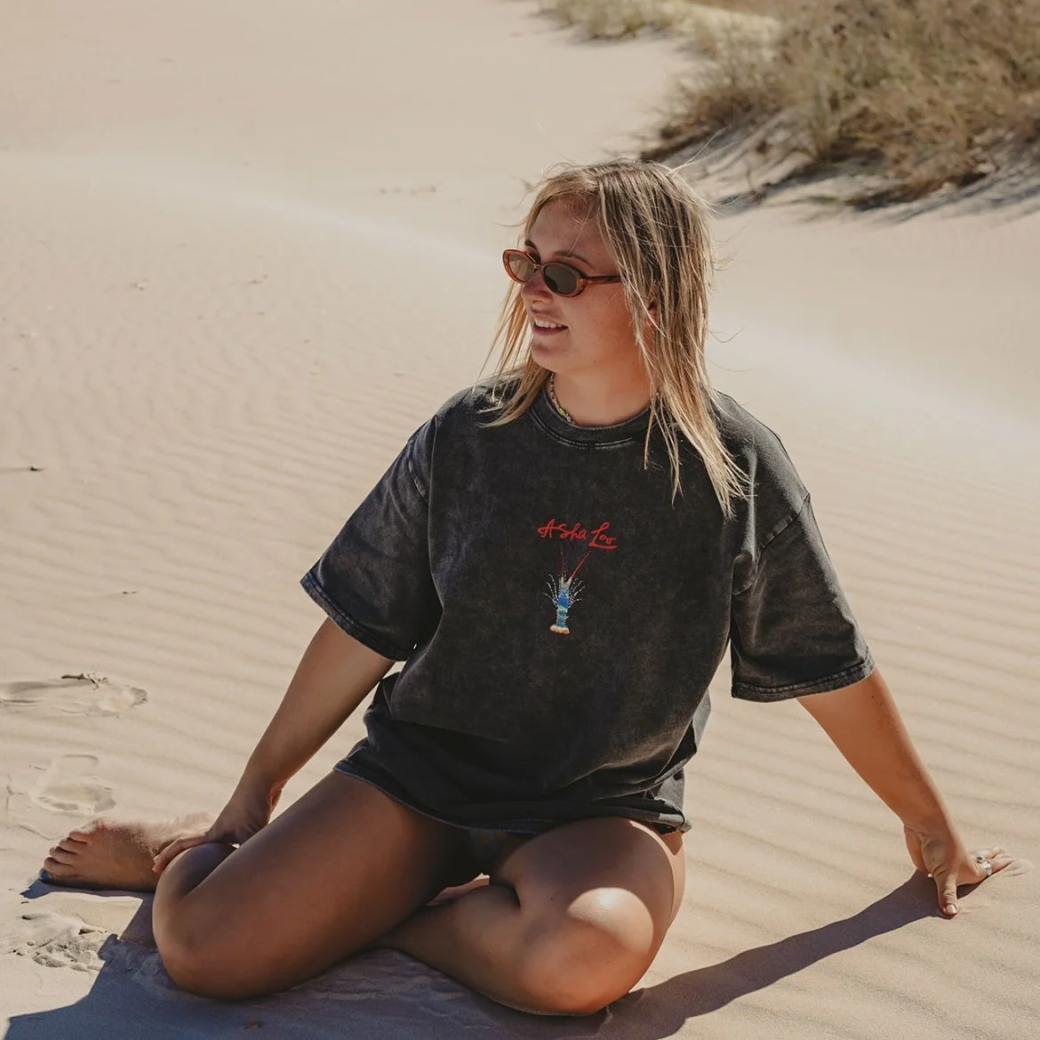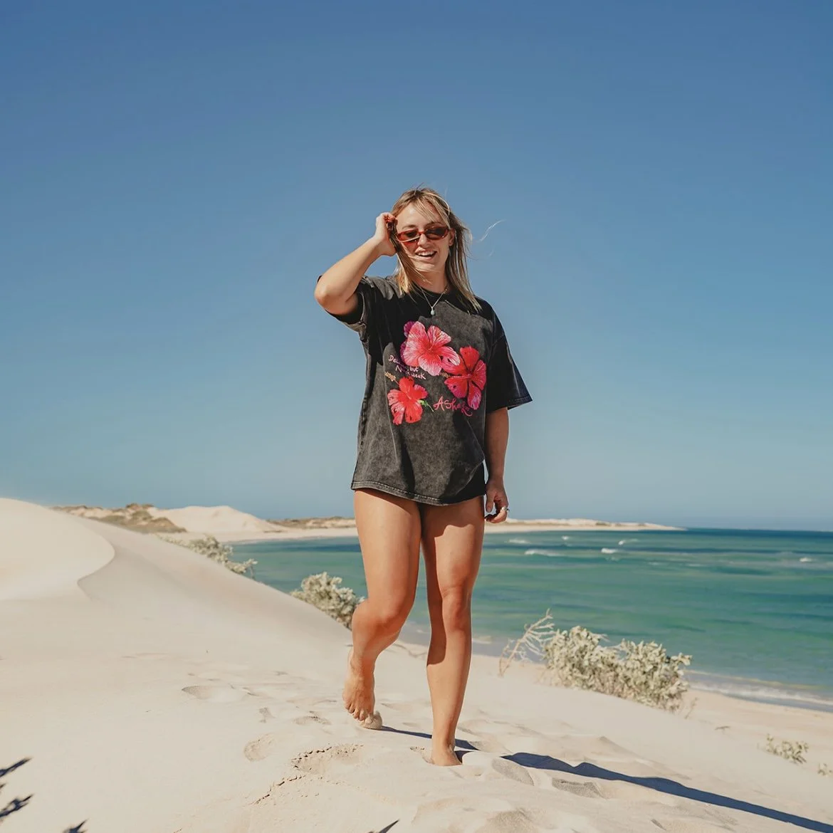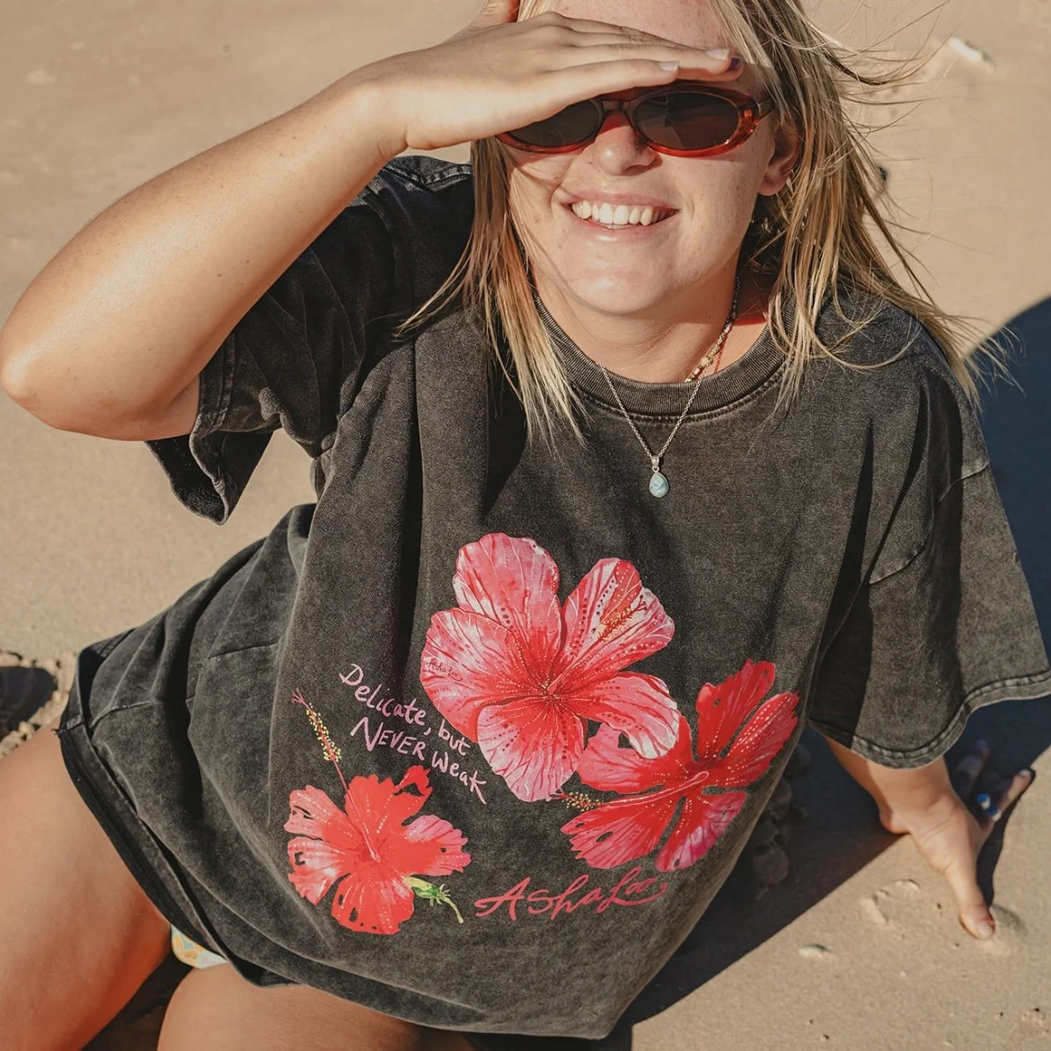 A oversized vintage acid washed tee made from 100% premium 250 GSM cotton, each tee features unique hand-painted artwork and is hand-printed by AshaLoo – making every piece extra special and truly one-of-a-kind.